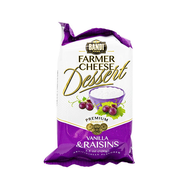 Introduce a unique and delicious twist to your dessert with FARMERS CHEESE DESSERT RAISINS! Made with high quality, natural ingredients, this 100g treat combines the creamy texture of farmers cheese with the sweetness of raisins. A tasty and healthy option for any dessert lover.