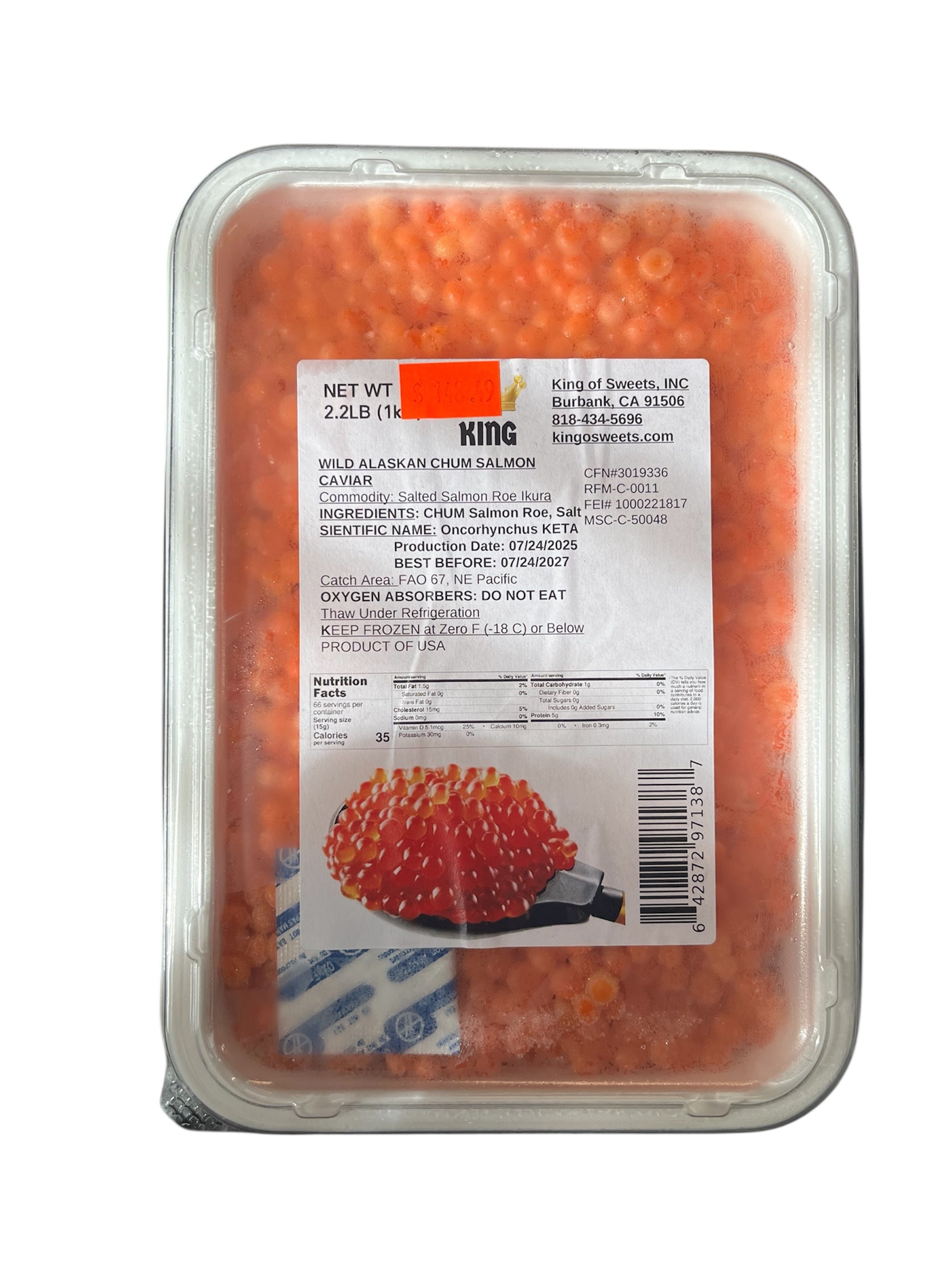 ‘KING’ WILD ALASKA CHUMS SALMON CAVIAR 1KG is backordered and will ship as soon as it is back in stock.