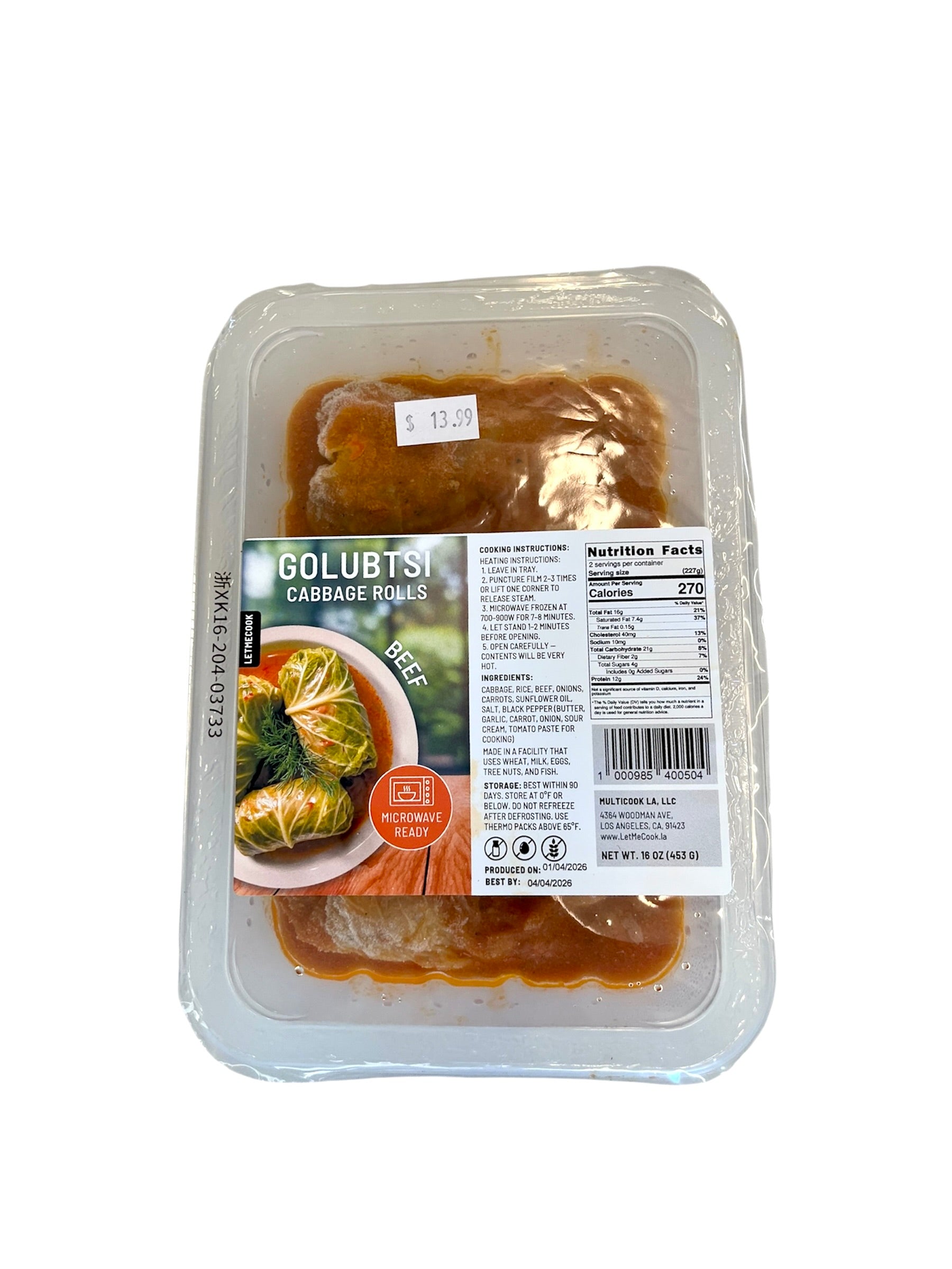 ‘LETMECOOK’ Golubtsi 453 g — Classic Eastern European stuffed cabbage rolls filled with seasoned ground meat and rice in a savory tomato sauce. Ready to heat and enjoy as a comforting, wholesome meal.