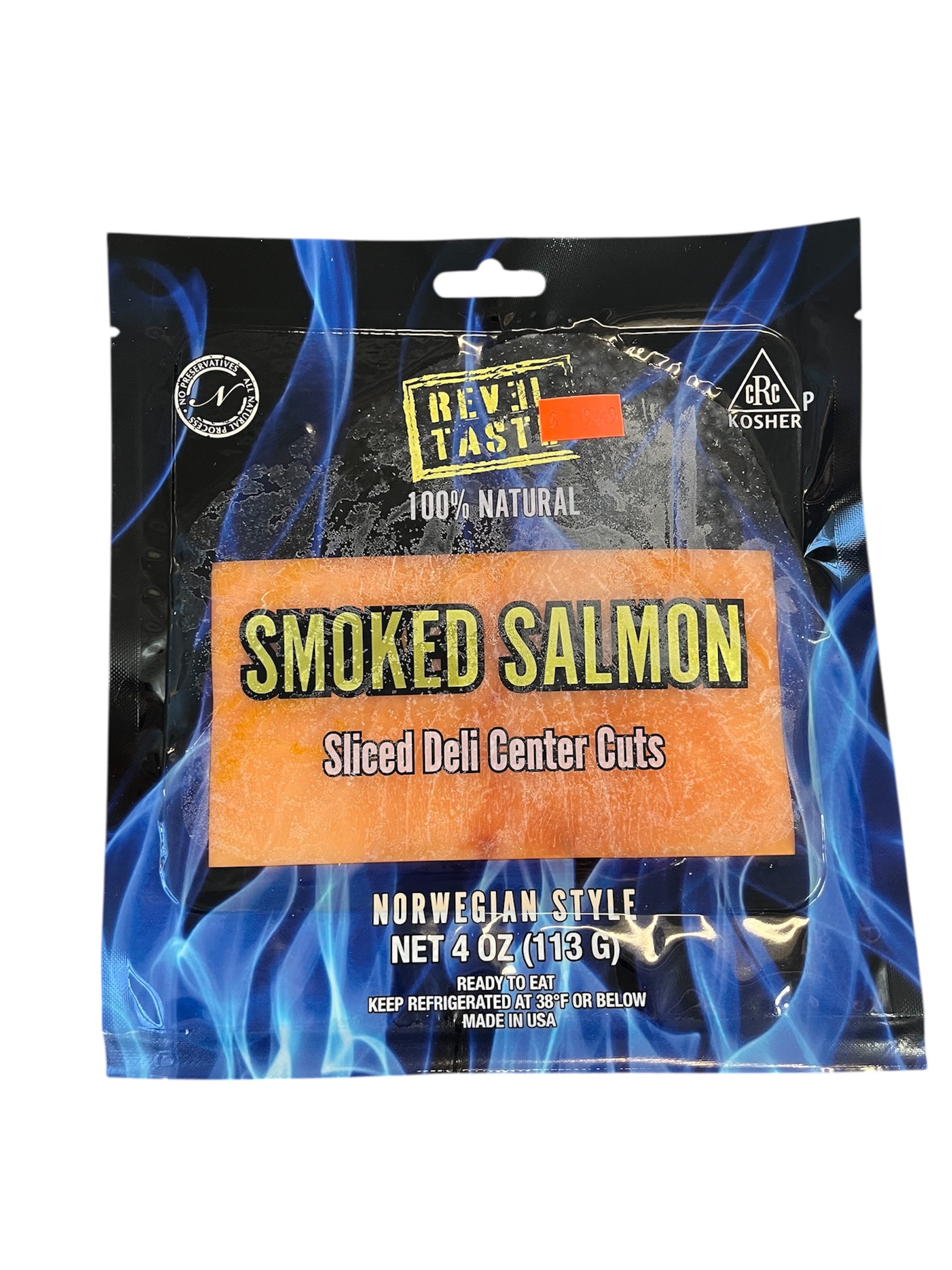 REVIL TASTE Smoked Salmon Sliced 113 g is a cold-smoked salmon delicacy — thinly sliced and ready to enjoy straight from the package.